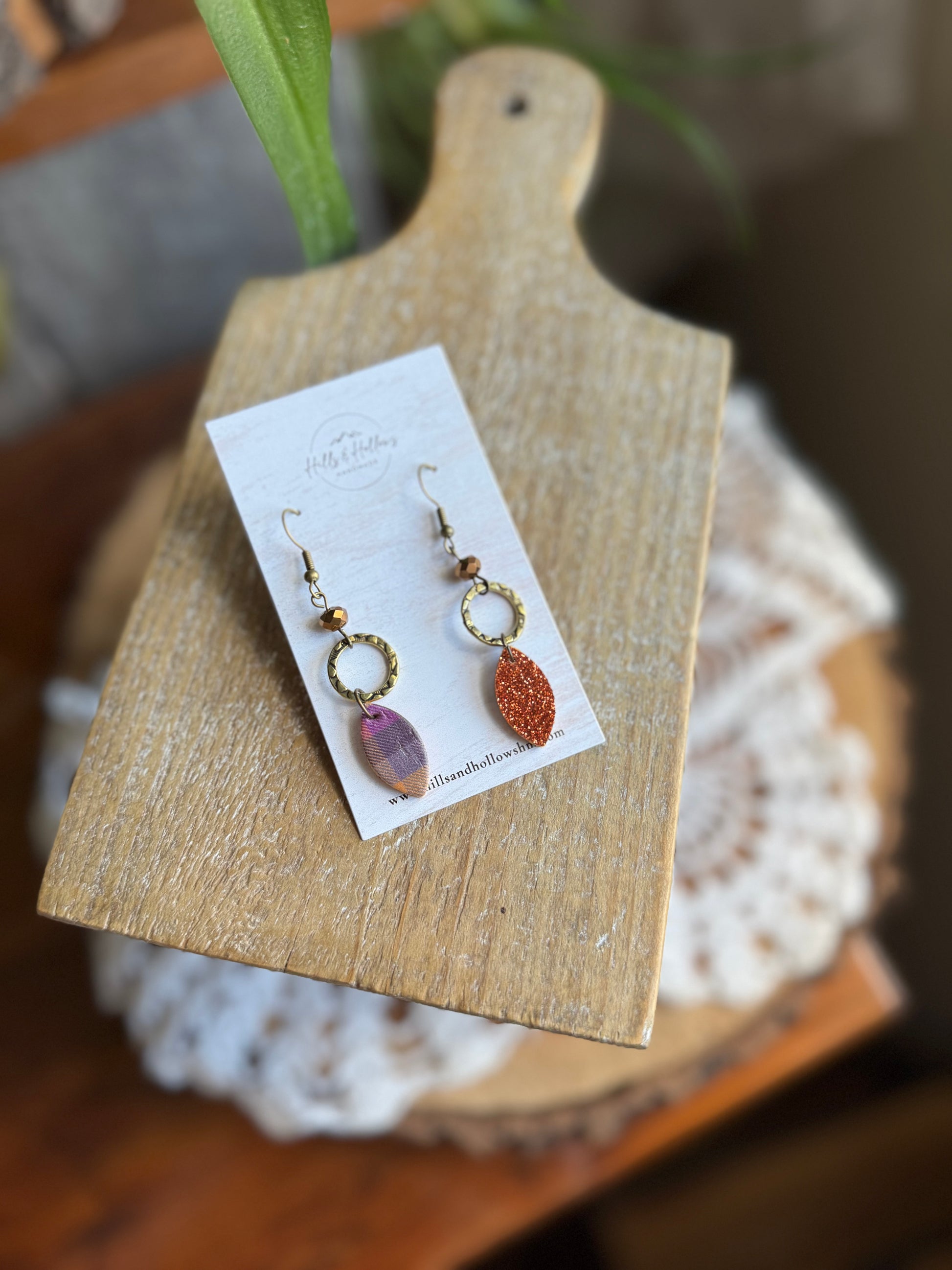 Halloween Plaid Crystal Leaf Dangle