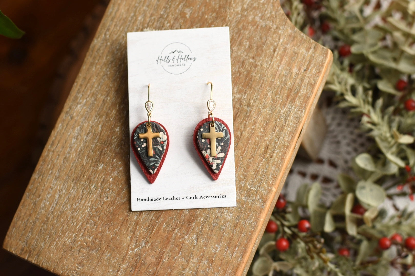 Available in silver or gold cross. Can be made using textured stud or hook.